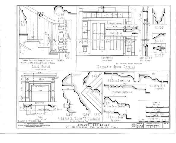 Many of the structures documented were only photographed, but quite a few were documented with drawings as well. A typical survey may include as few as 3 or 4 sheets of drawings. Some contain as many as 20 to 30 sheets of drawings which include moulding and hardware details.
