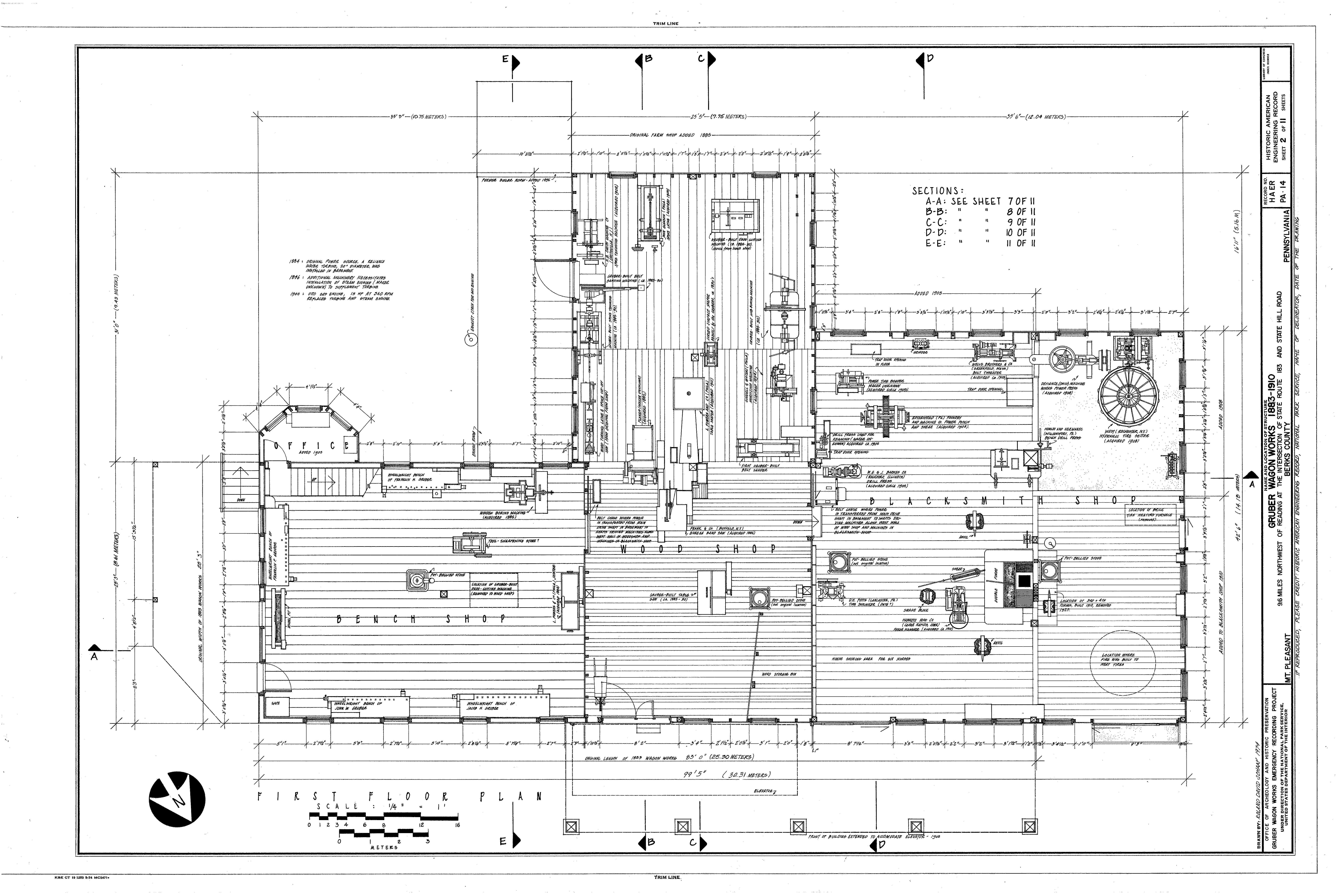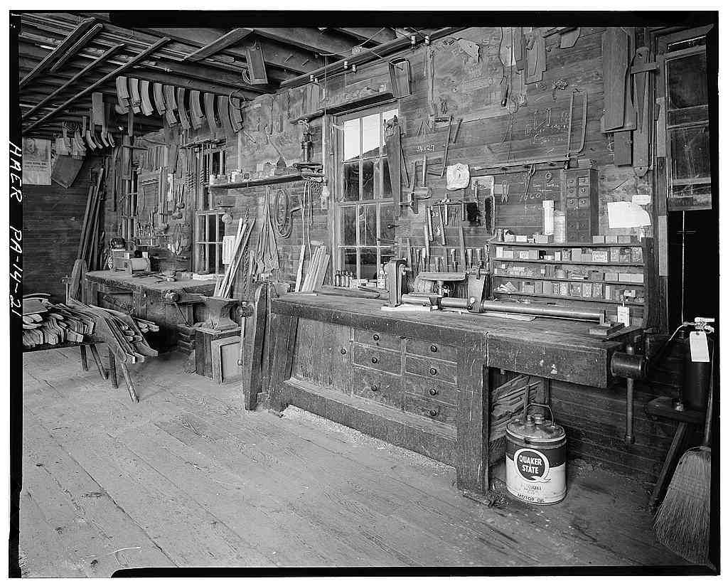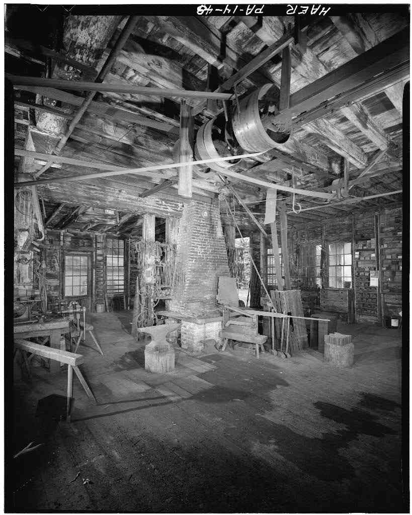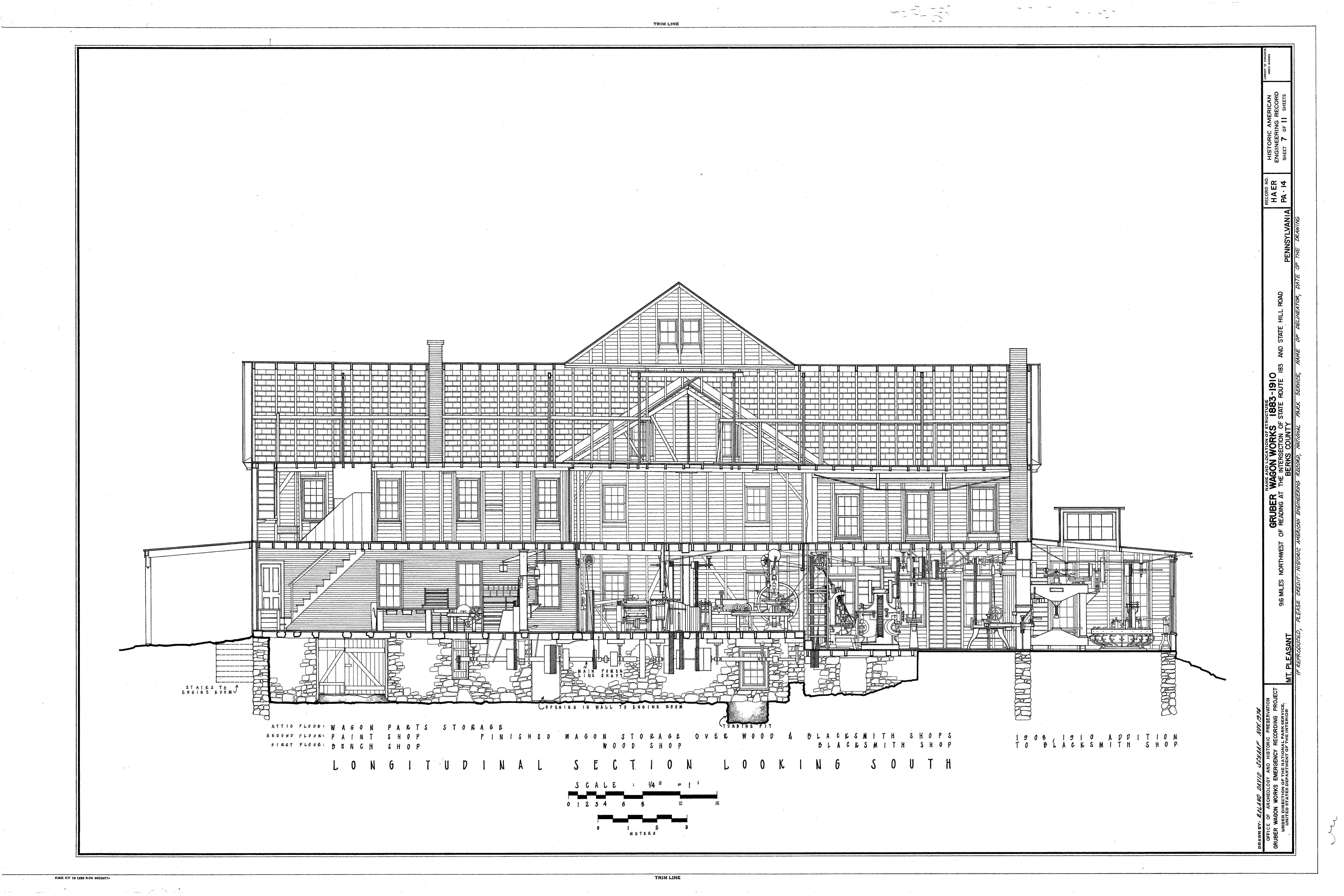 Documented in 1974 by the HAER in 11 sheets of drawings and 215 photographs, the wagon factory was a rare existing example of late 19th century American industrial age. It contained most of the original belt-driven machinery, still in their original locations.