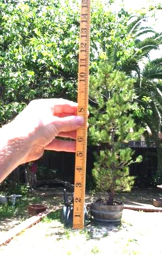 The way to use this one is to pace off 25 feet from the tree, building, etc. Turn and face it, holding the rule at arm’s length. 25 inches from your eye is the ideal distance. hold the rule so that the bottom of it lines up with the bottom of the object, like so: