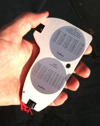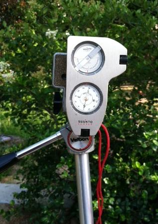 A clinometer, or inclinometer is a device which measures the angle of slope and uses basic trigonometry for estimating height. My clinometer is a combination clinometer and optical compass made by the Finnish company Suunto and is called the Suunto Tandem. Like the iPhone, you’ll get better results if it’s mounted to a tripod and the Suunto has a 1/4″ socket for this.