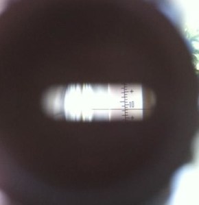 You look through the peep sight, leaving both eyes open. The graduated scale is superimposed over the object you’re centered on and you can read the results as either a percentage of slope or degrees of elevation.