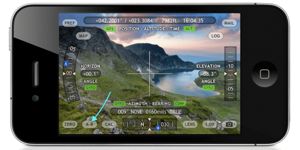 Theodolite Pro is an app for the iPhone, iPod Touch and the iPad. Made by Hunter Research & Technology , it’s a multi-function augmented-reality app that combines a compass, GPS, digital map, zoom camera, rangefinder, and two-axis inclinometer. Theodolite overlays real time information about position, altitude, bearing, range, and inclination on the iPhone’s live camera image, like an electronic viewfinder.