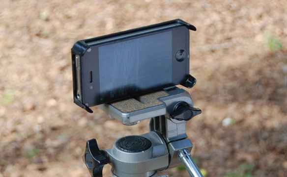 You’ll get a much better result if you mount the device on a tripod. For an iPhone, the method I like is with a Snap Mount. It has 1/4″ female sockets for mounting in either a vertical or horizontal direction.