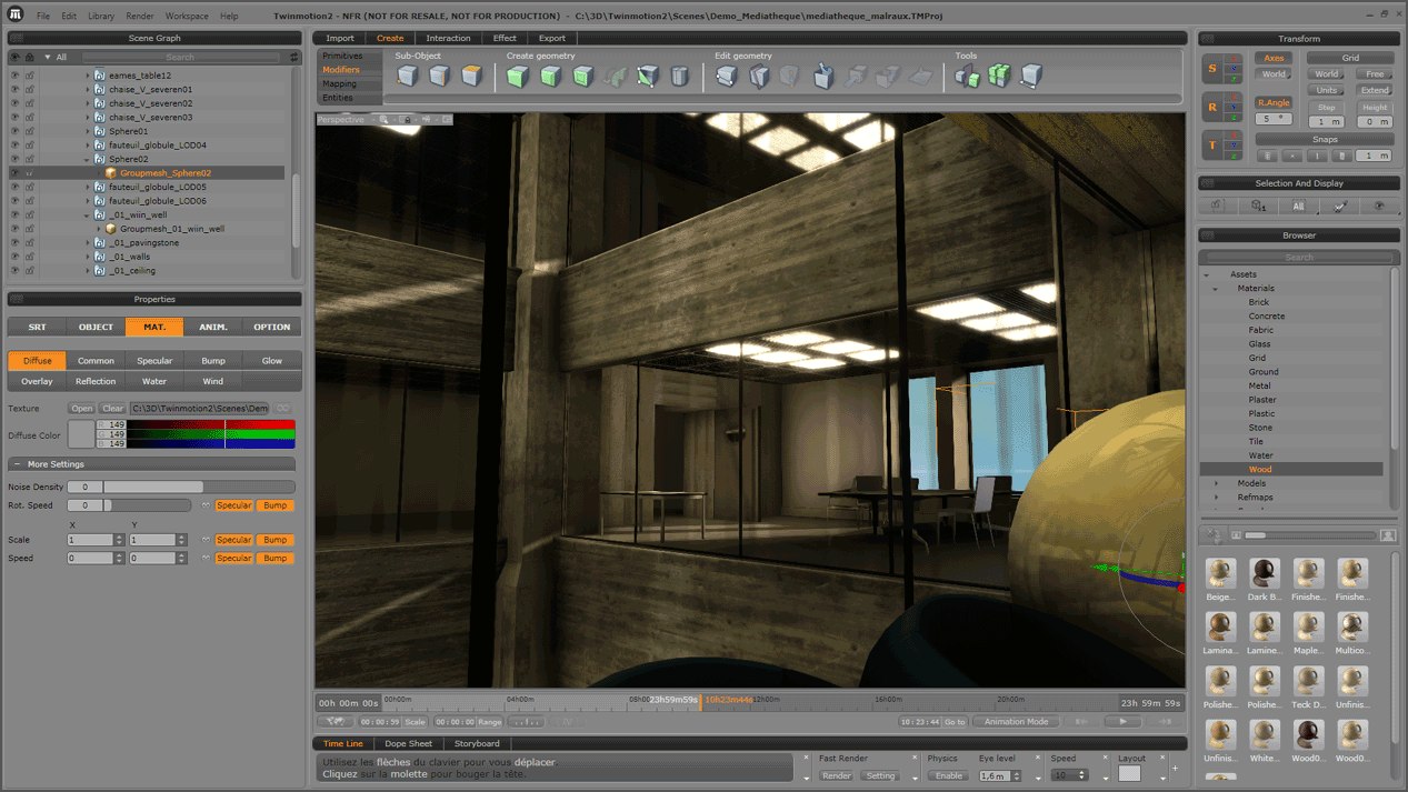 Twinmotion 2 bills itself as “the render killer”. It was developed by an architectural film as an in-house application but was made available to the public. Like Lumion it is capable of handling huge models because of its Level Of Detail technology that renders distant objects with less detail and increases the poly count as you move closer to them.
