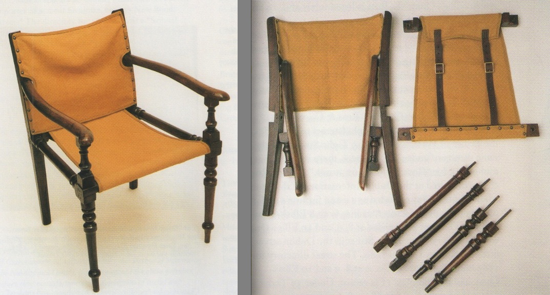Roorkhee chair fitted with canvas seat and back. From British Campaign Furniture by Nicholas Brawer.