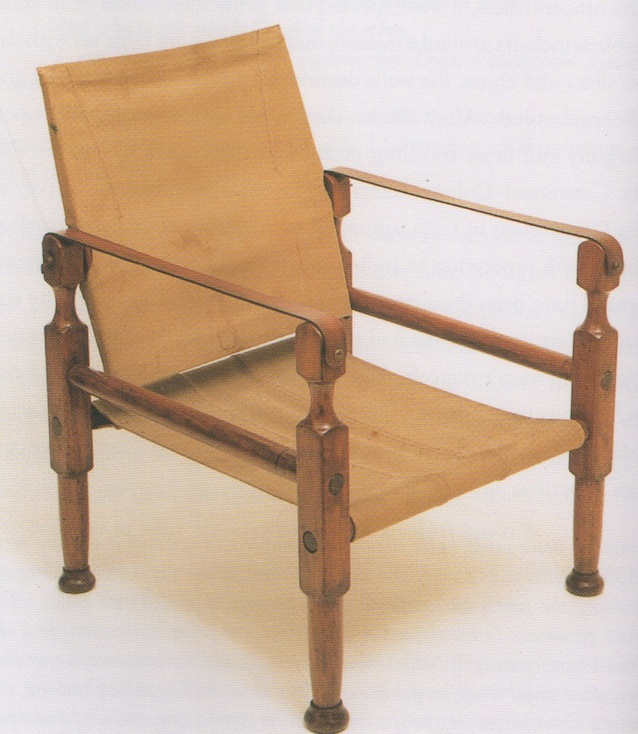 In 1899, the British Army experienced an entirely new type of war. The Boer War in South Africa changed the way people thought about modern conflict and the idea of a ‘Gentleman’s War’ was gone. The over-designed and over-stuffed campaign furniture of the Victorian Era was unpractical for the new hit-and-run tactics which demanded something lighter and more austere. The Roorkhee Chair came out of this need for a chair that was both simple and still robust enough to stand rough treatment. Weighing between 11 and 13 pounds, the chair was usually covered in canvas with leather straps for arms and easily broke down for travel. The design also had the advantage of allowing the chair to sit with all four feet level no matter how uneven the ground was. The name of the designer is lost to history, but the chair was named in honor of the Indian Army Corps of Engineers in Roorkhee, India.