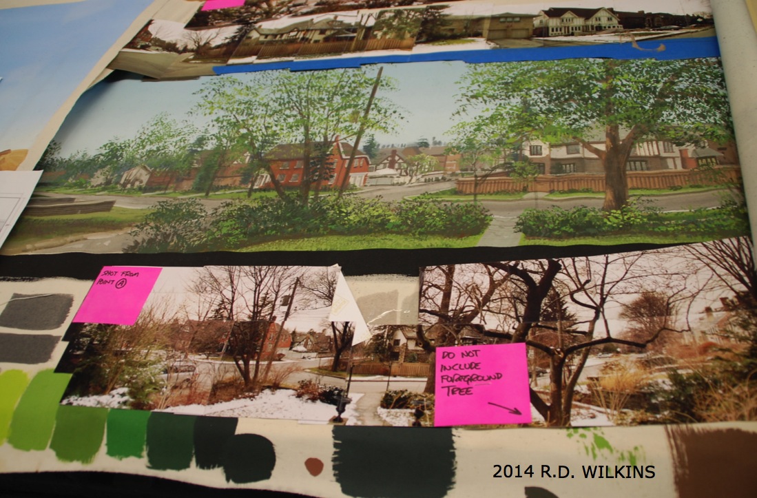3. Painted backings can be altered easily to reflect changing seasons. You can paint over a backing to create, snow, leaves, remove architectural elements and restore it back to it’s original form where you would need entirely different photographic backings in each case.