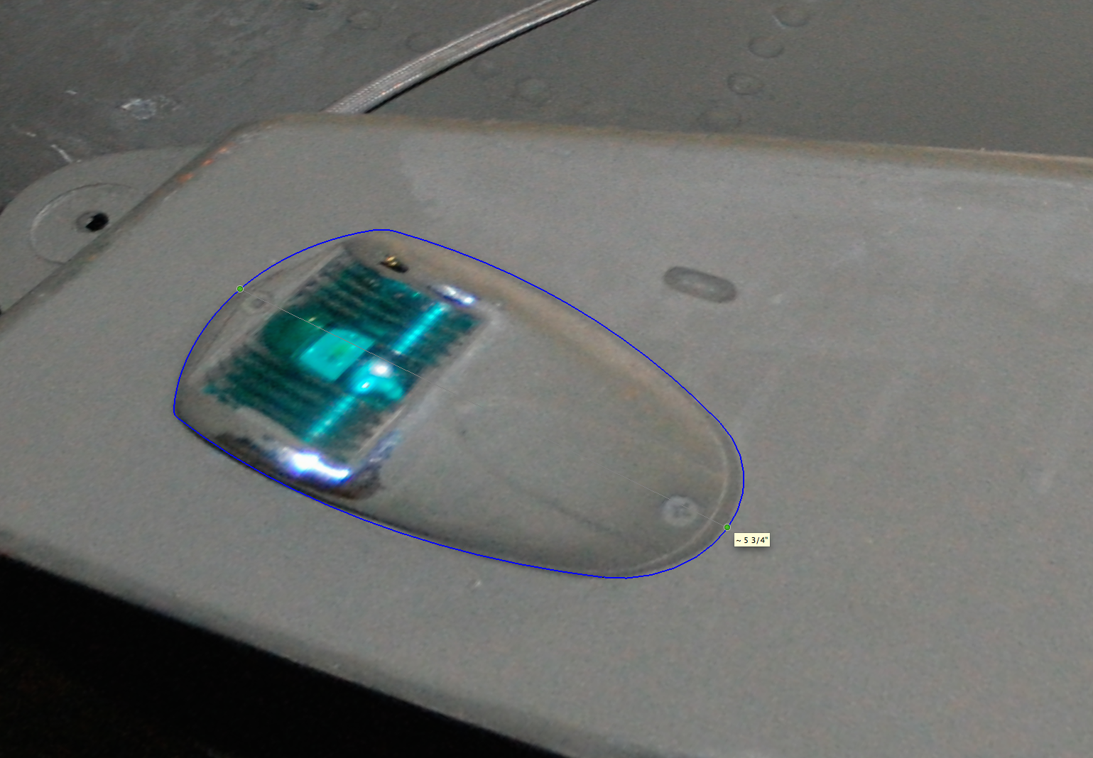 Now you can trace any area you like and the tape tool will give you a correct length, Screen Shot 2015-04-09 at 4.42.54 PMproviding you are measuring in the same focal plane as the nomen. Obviously if you are measuring something in the foreground or background the measurement will be off, which is why you need lots of survey photos  if your subject is complicated,
