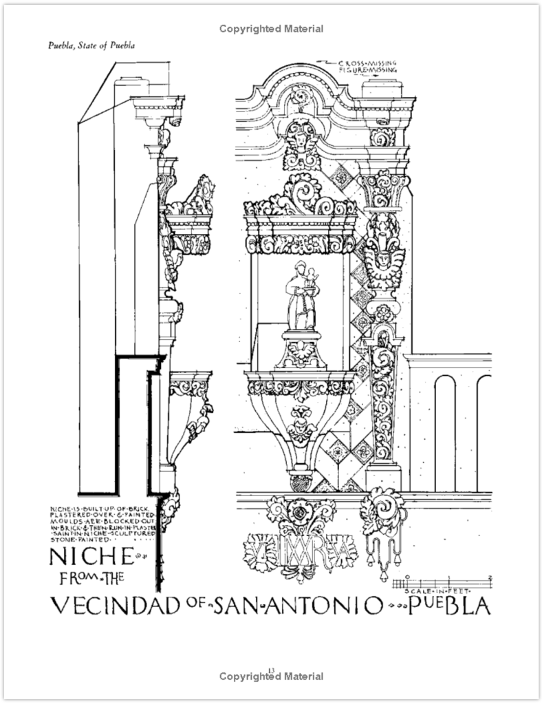 Another book done in the same style from 1930 is Early Mexican Houses: A Book Of Photographs And Measured Drawings. This book was created by G. Richard Garrison and George Rusty, two young architects in the late 1920s who spent five years documenting domestic Mexican homes when they found that there was very little available literature on the subject.