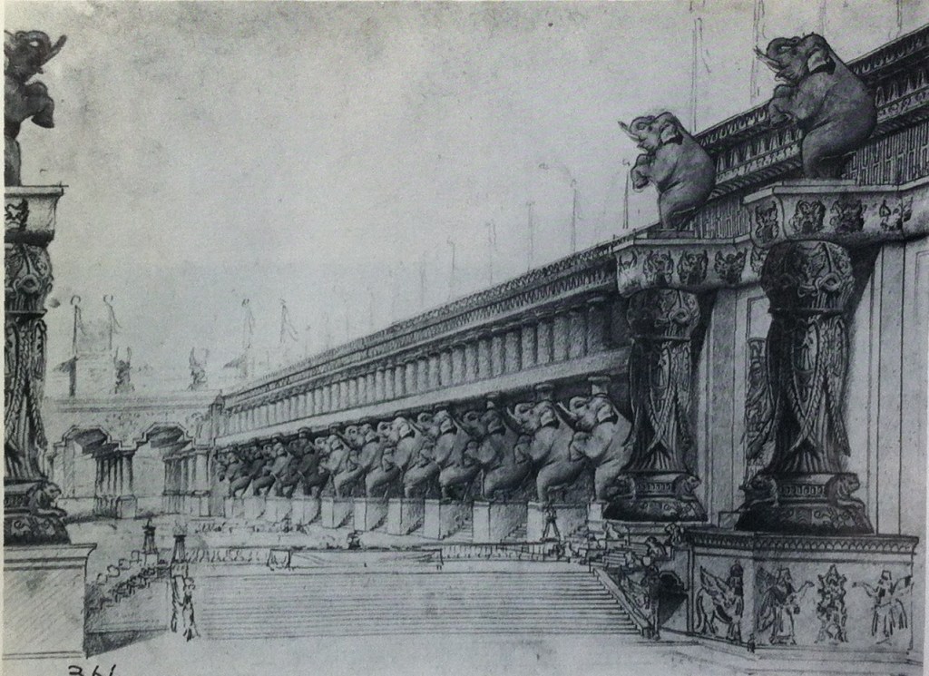 Walter L. Hall drawing for the Babylon set for the D.W. Griffith film 'Intolerance'.