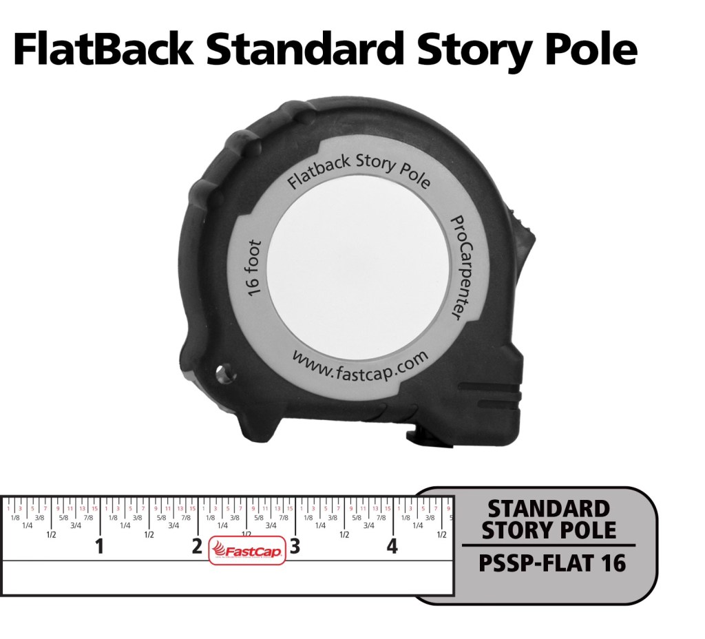FastCap Flat Back Tape – You can not only measure round or curved surfaces but it has a blank area to write on for use as a story pole. – $10.00