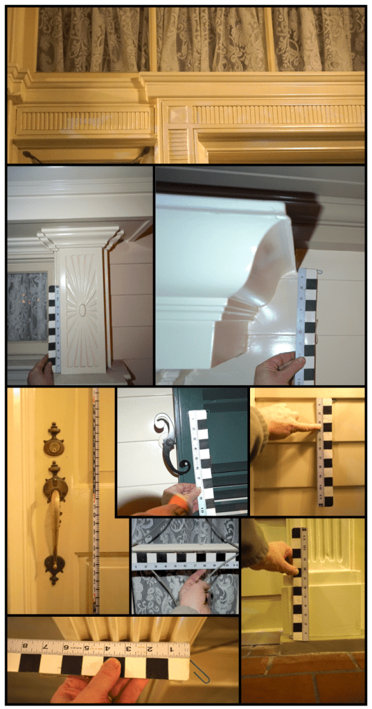 2- Detail photos using a small story stick so that those can also be used for photo-scaling. The photos are important as I know I will often run out of time and the photos are a visual record that can be referred to if I haven’t been able to get a hard measurement with a laser or tape.
