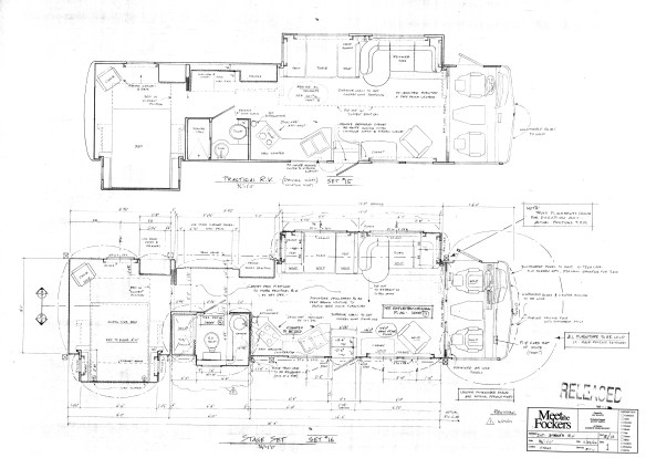 Here are some samples of my drawings from the past 25 years. You’ll notice that the show title in the title block of some of the drawings doesn’t match the caption. With many popular films or shows, the studio or network will often create a ‘working title’ so that an accidental leak of production materials won’t show up on the radar of people who are trying to glean information or storylines about the project.