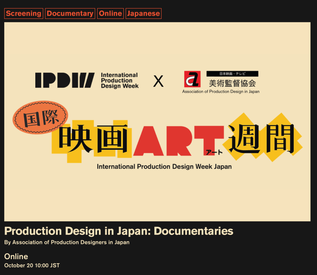 The nine day series features nearly 200 seminars, exhibitions, meetups, tours, and lectures with acclaimed Production Designers from 27 countries. Some of the events are presented online for viewing from anywhere while others are held in specific sites for a live audience.