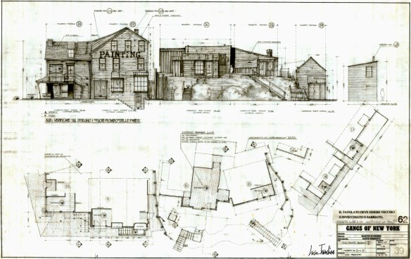 The building they had leased made for an odd sound stage, but its size made it large enough to build the sets for the film in. There were the normal problems you deal with in a structure that was never designed to be a sound stage: support posts at regular intervals, a ceiling that is not nearly as high as those in an actual sound stage. On the plan below, you can see where the oval columns were designed to hide two of the building’s I-beam columns.